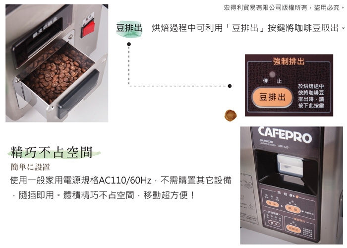 此不用擔心會烘出深淺不一的豆子!此機也可說是市面上烘度溫度最精確
