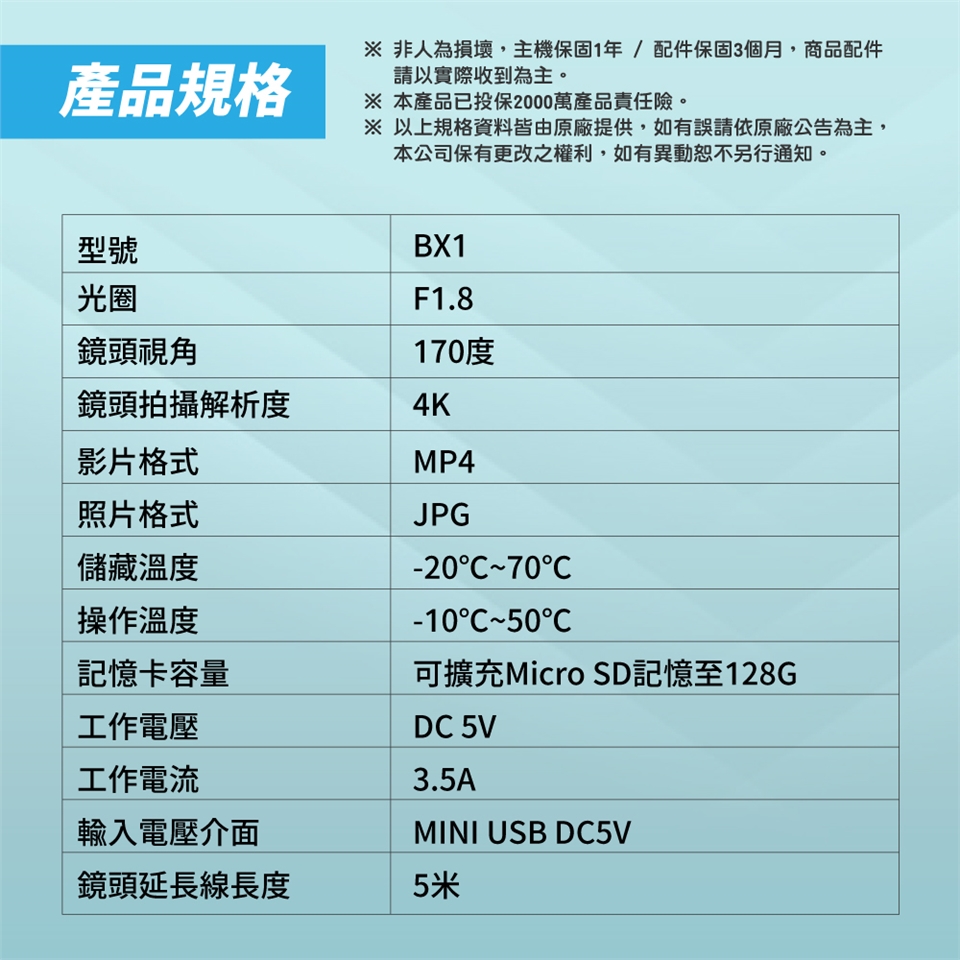 鏡頭:4K 高解析廣角鏡頭