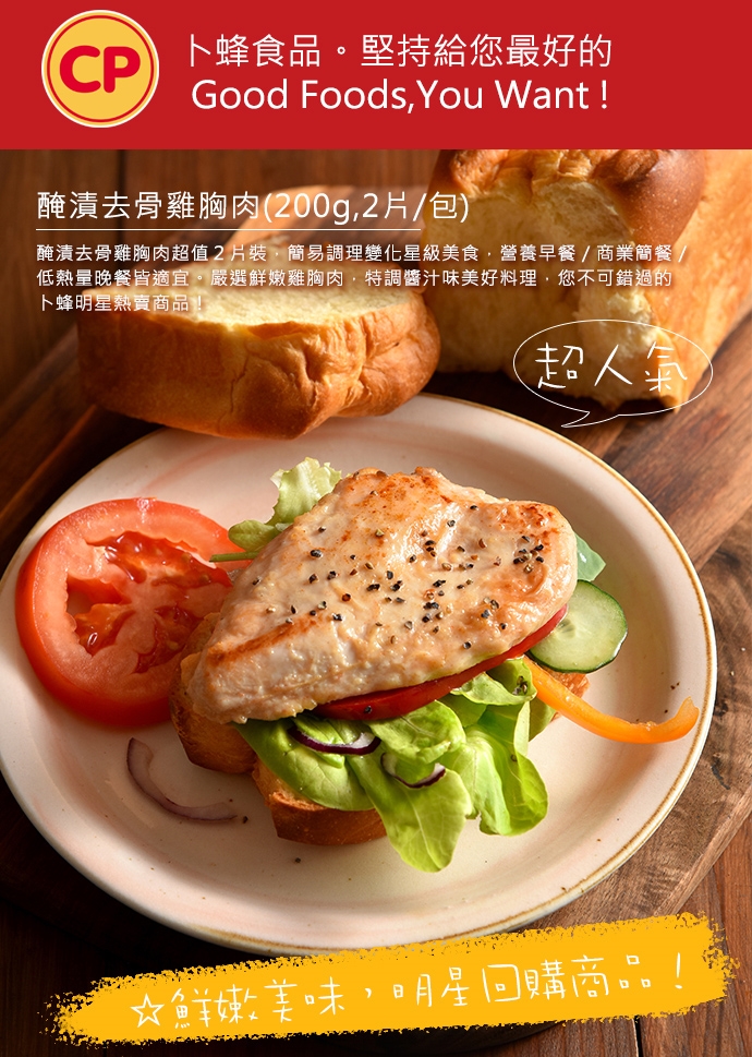 【卜蜂】醃漬去骨雞胸肉(200g,2片/包)
