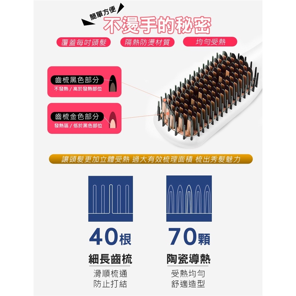 ◆ 防燙齒梳不燙手、陶瓷導熱均勻不傷髮