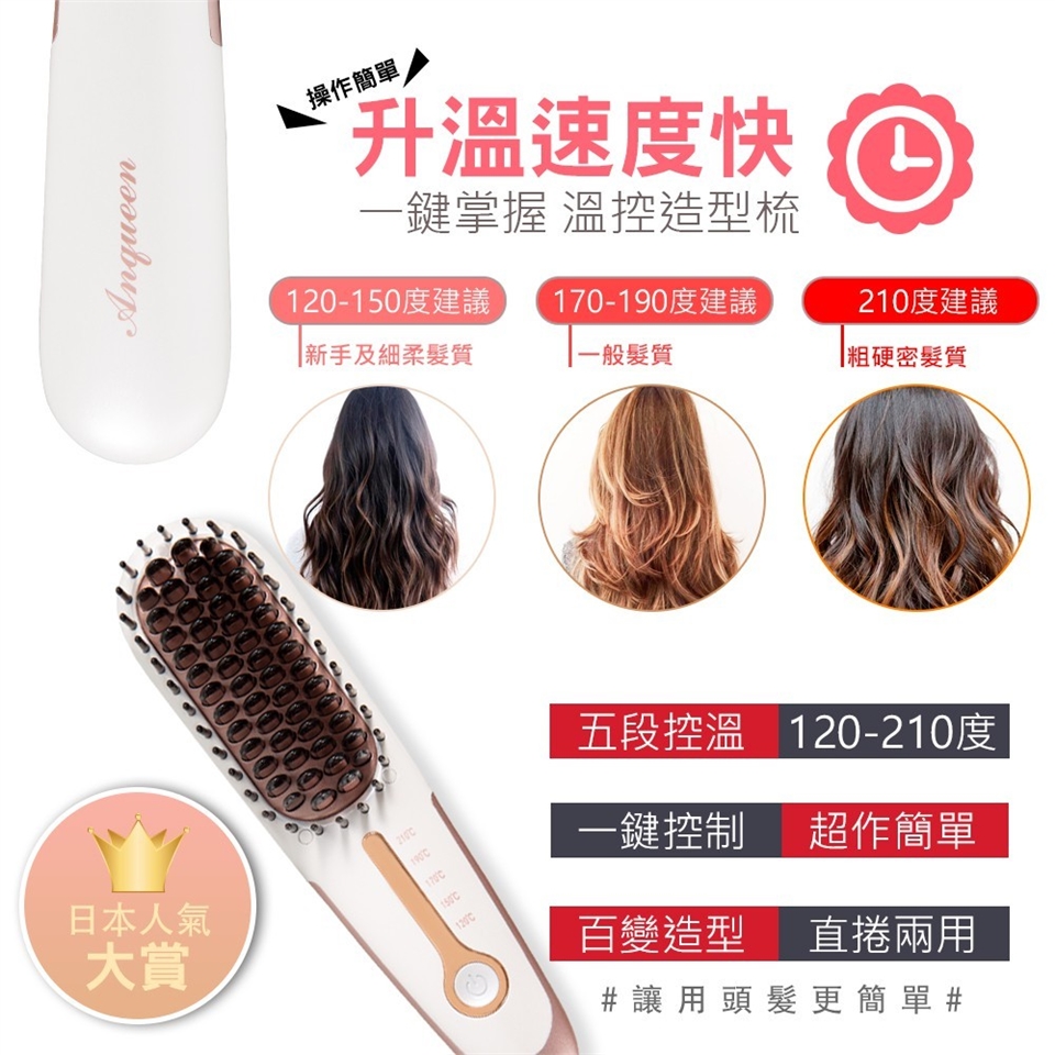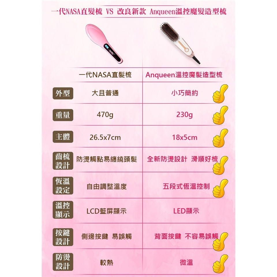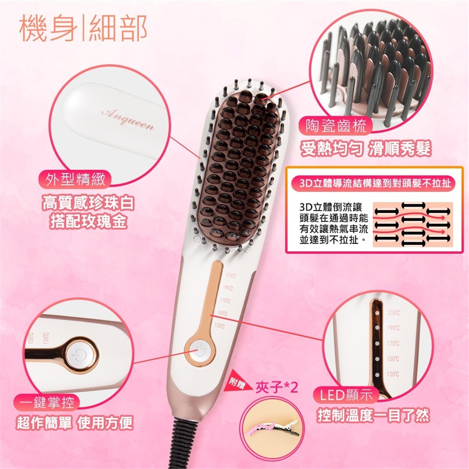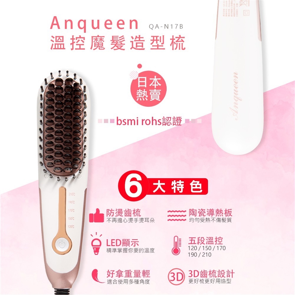 ANQUEEN 帶線溫控魔髮造型梳 型號 QA-N17B