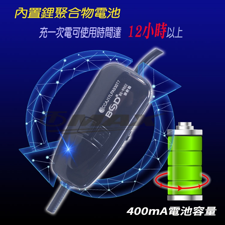 4.發射器内置鋰聚合物電池,充一次電可使用時間達 12 小時以上
