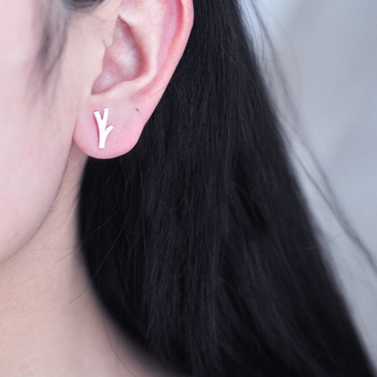 商品內容:精鍍銀樹枝造型元素拉絲耳釘 H111030116