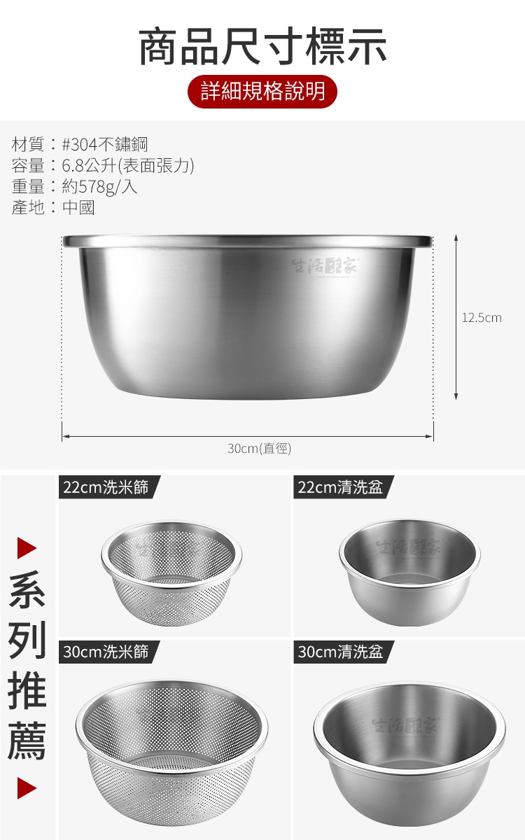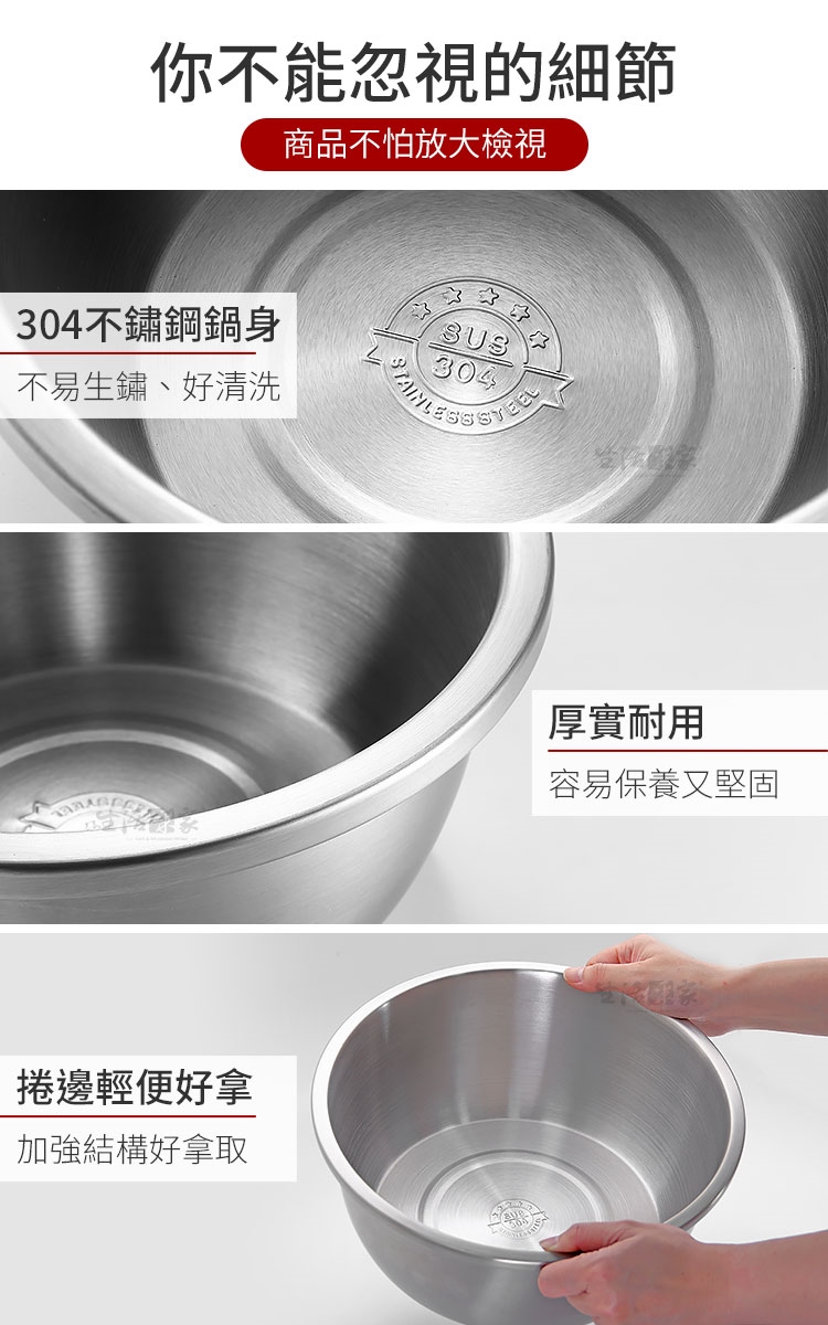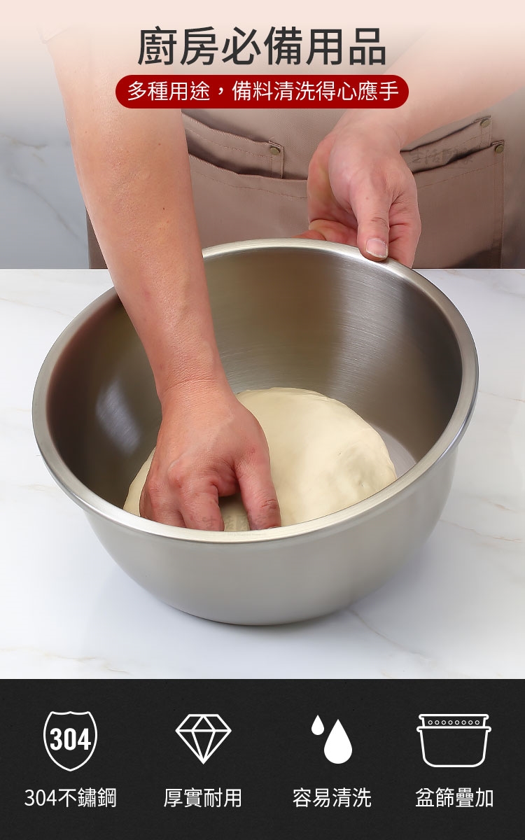 日常料理備料~洗菜、洗水果、海鮮真的很方便,採用食品級304不鏽鋼材質,加厚加固,捲邊設計讓整個盆體更加堅固耐用,準備食材更有效率、更加便利,馬上入手輕輕鬆鬆搞定廚房的二三事!