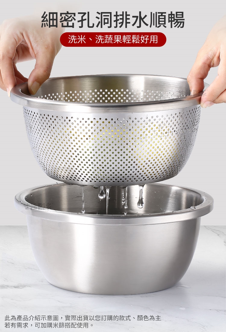 ◆尺寸多樣好搭配,密孔米篩可與清洗盆搭配,用起來更便利。