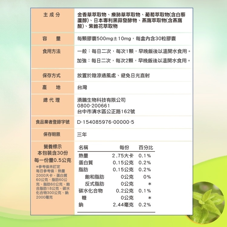 金香草+療肺草+日本專利黑蒜發酵物+燕窩萃取物,黃金比例配方!!
