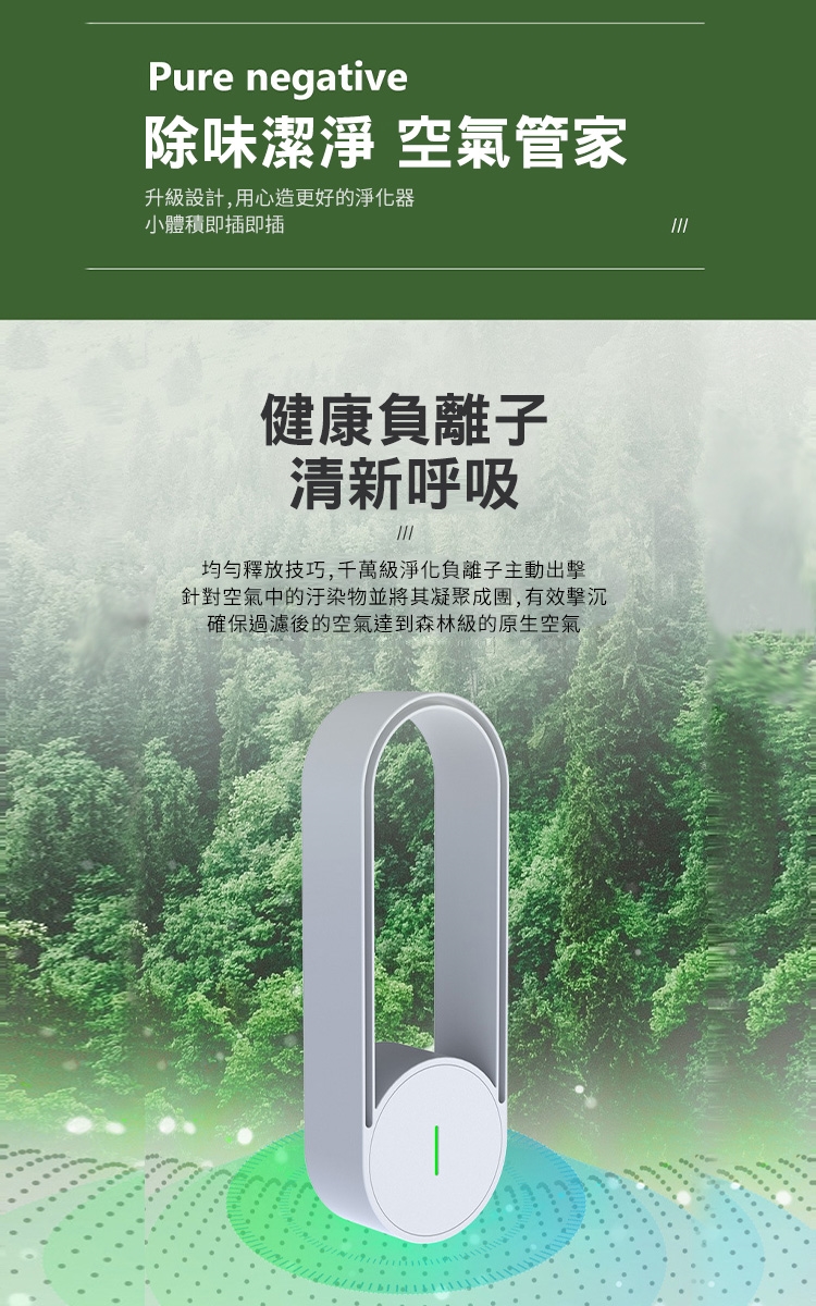 內容物(單):外盒x1、負離子淨化器(USB插座款)x1、說明書x1