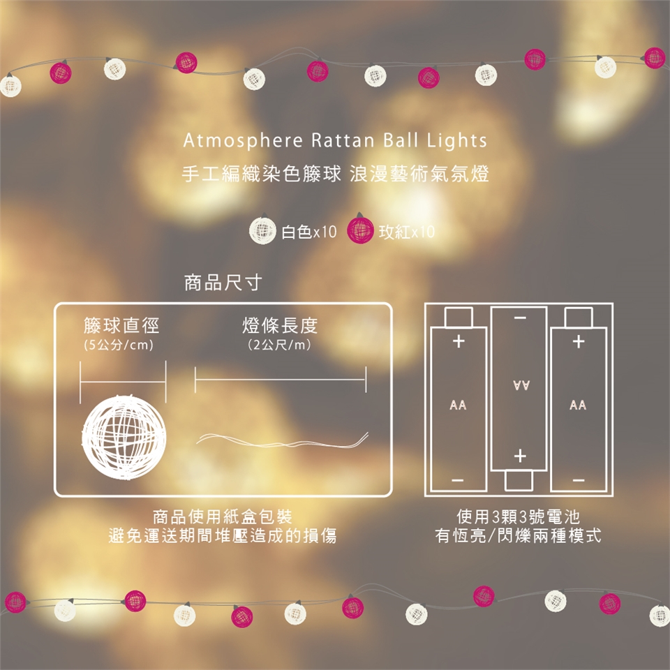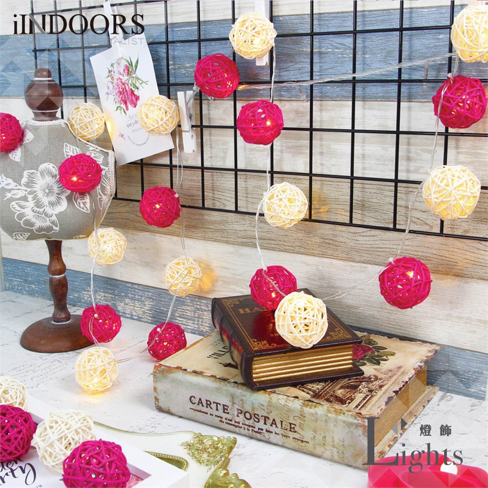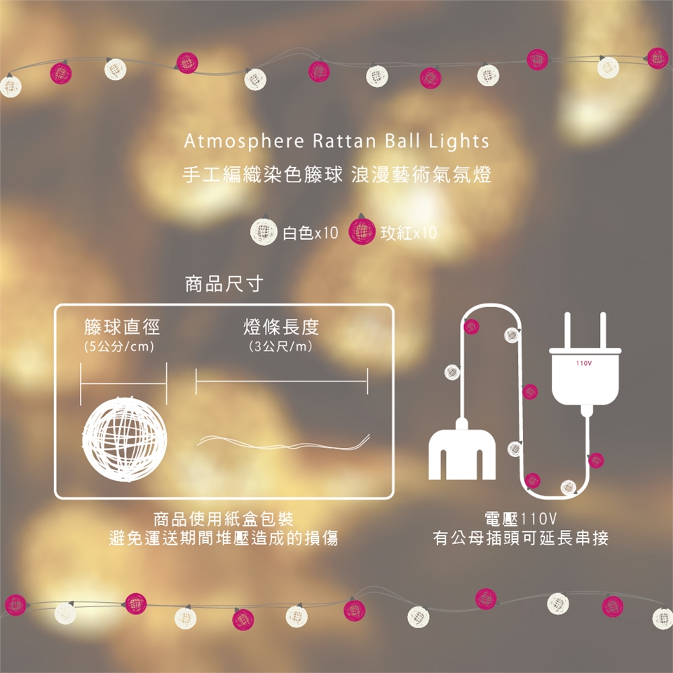 內容:籐球x20、LED暖黃燈x20