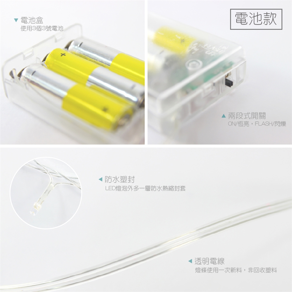 電池款:200cm,使用3號電池x3,閃爍/恆亮模式可調整