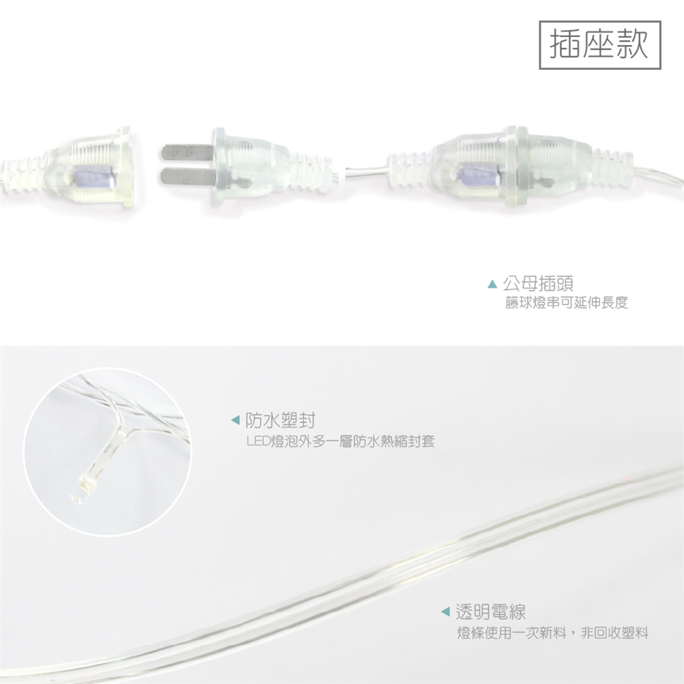 插座款:300cm,電壓110V,可串聯延長,恆亮模式