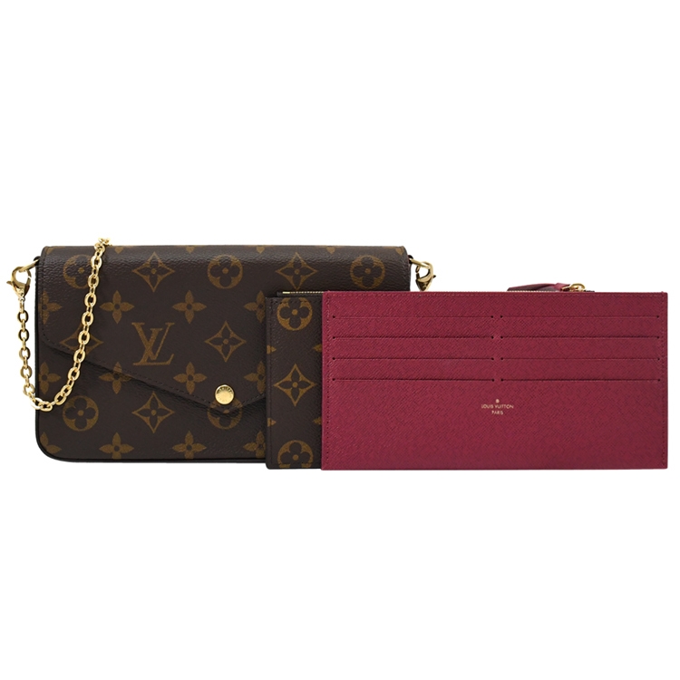 LV 這款優雅的Pochette Felicie 最新款小提包,選用 Monogram經典花紋帆布+粒面牛皮鑲飾+布襯裡打造,內設有1獨立卡夾(8卡片夾層+1內袋)+1獨立拉鍊袋供收納,可把您的日常隨身物裝載得井然有序,也可分開單獨使用,可放置大包內,另配有可拆式金色鏈條,可隨時變成華麗的肩揹袋或手拿包或斜背,設計極富趣味又實用,流滿都會時尚味道,是款時尚又實用的單品配件。