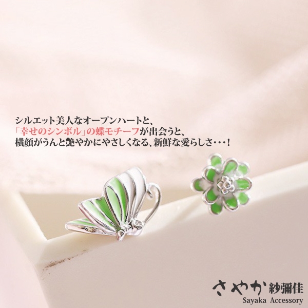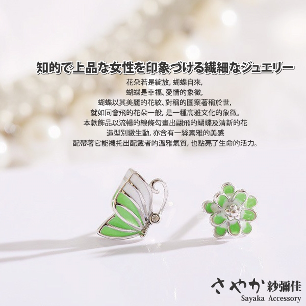 本款飾品以流暢的線條勾畫出翩飛的蝴蝶及清新的花,造型別緻生動,亦含有一絲素雅的美感,