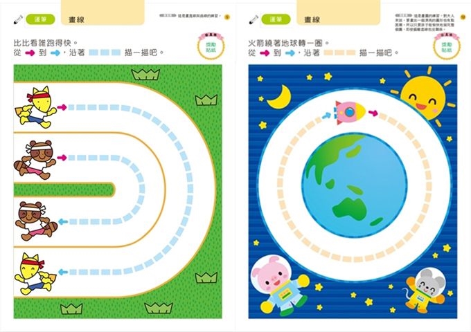 孩子對寫寫畫畫產生興趣之後透過畫線練習和初級迷宮遊戲,培養注意力、集中力及運筆能力。
