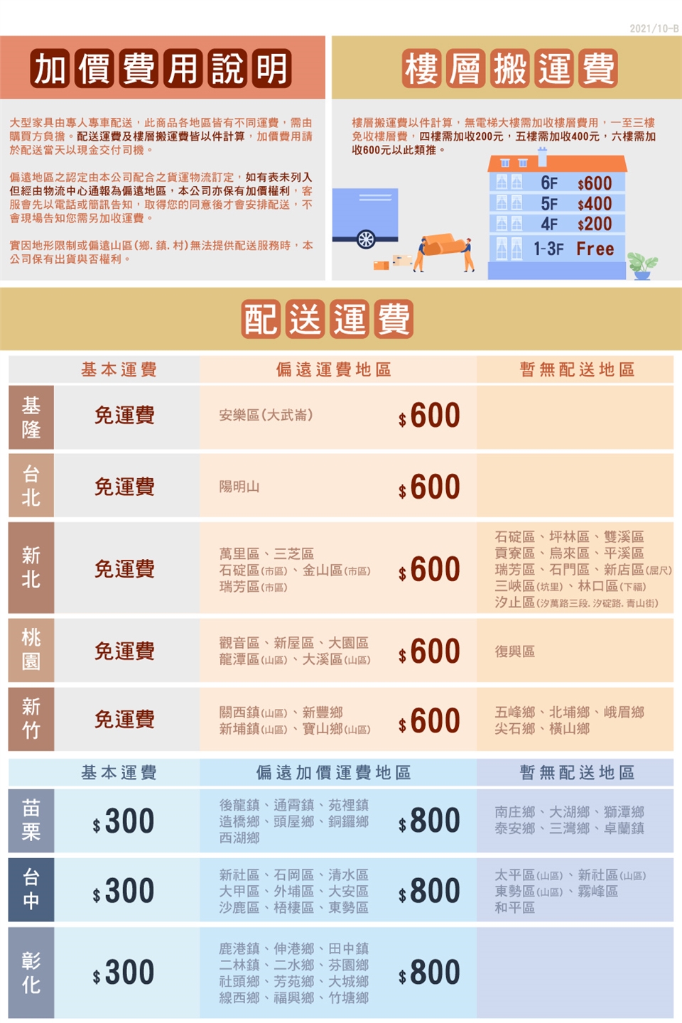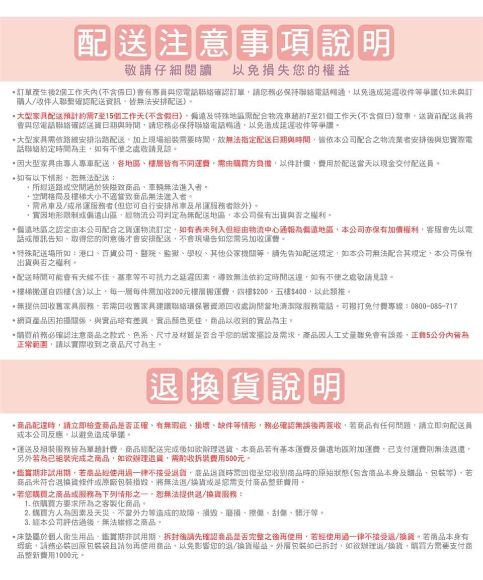 (1)此商品各地區皆有不同運費,詳細說明請見商品內文圖下方「配送運費說明」。