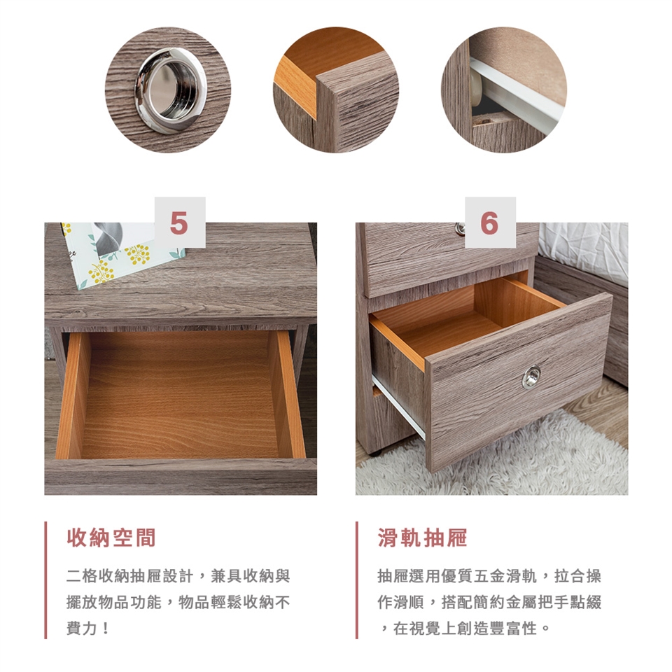 抽屜採用優質五金滑軌設計,操作滑順拉合輕鬆,使用上更加便利!