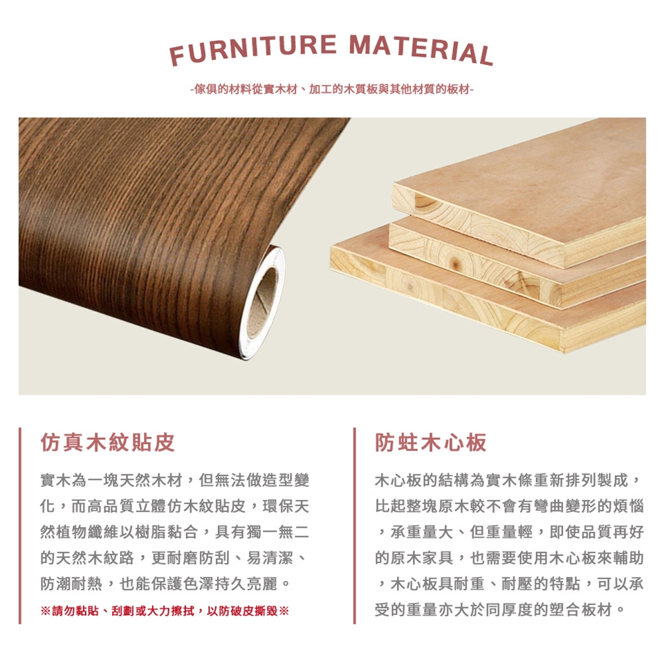 (2)此為基本款量產商品,部分細節無法盡善盡美,非正常使用面皆無貼皮處理,背面或邊緣處會有釘痕、貼皮輕微不平整及脫皮等情況,均屬正常現象且不影響使用,如果您對品質有較高要求者請審慎購買。