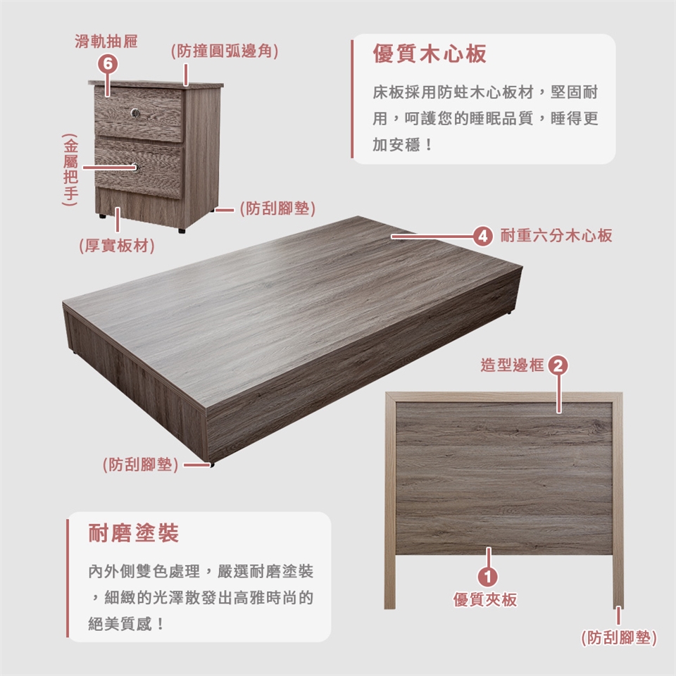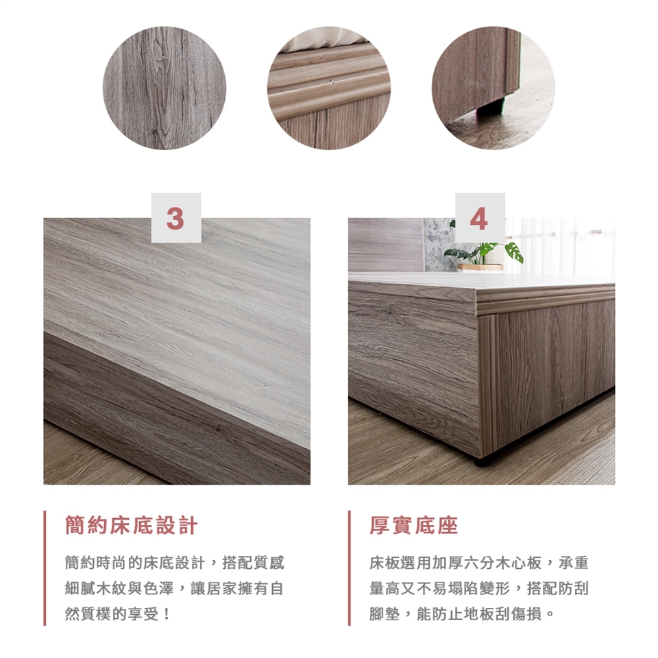 床板選用厚實的六分木心板材,搭配厚實底座,呵護您的睡眠品質,睡得更加安穩!
