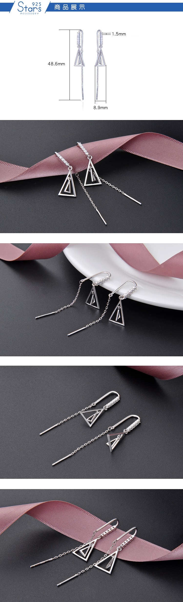 【925 STARS】純銀925微鑲美鑽幾何三角時尚耳線造型耳環 純銀耳環 造型耳環 美鑽耳環 情人節禮物
