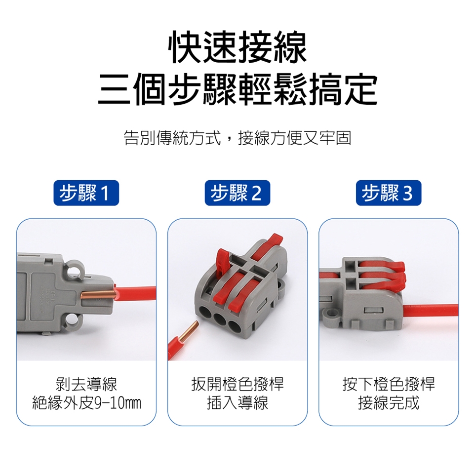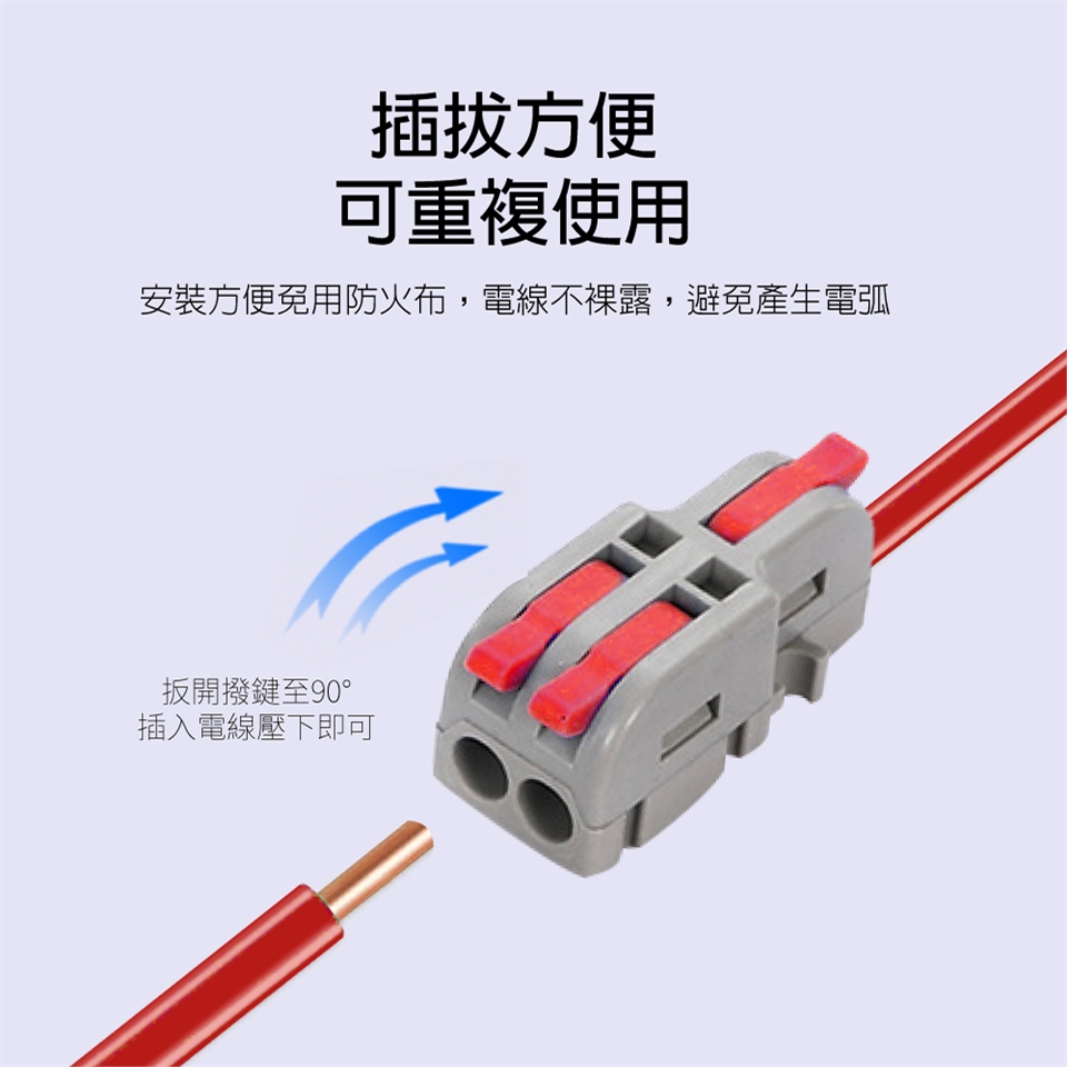 step2. 扳開快接頭撥桿後將導線插入孔內