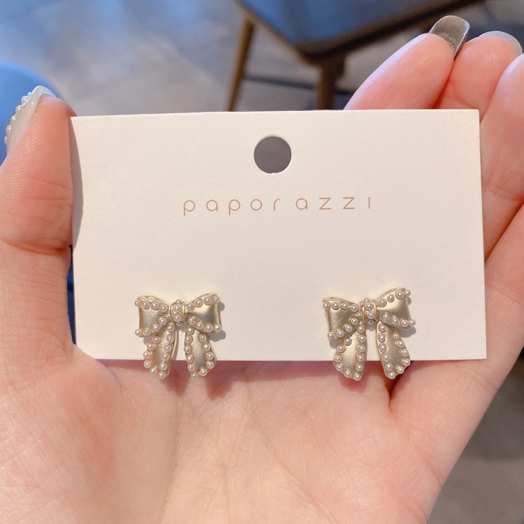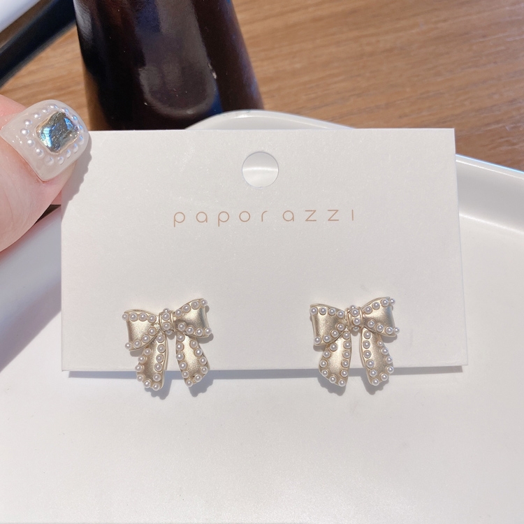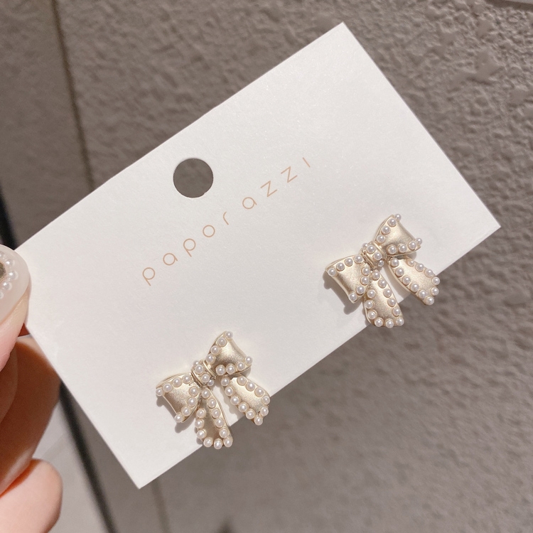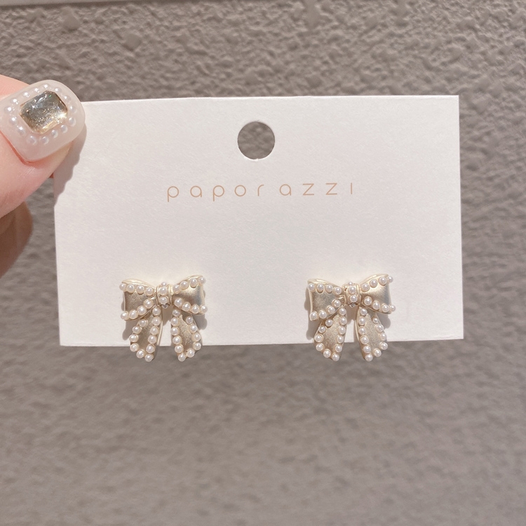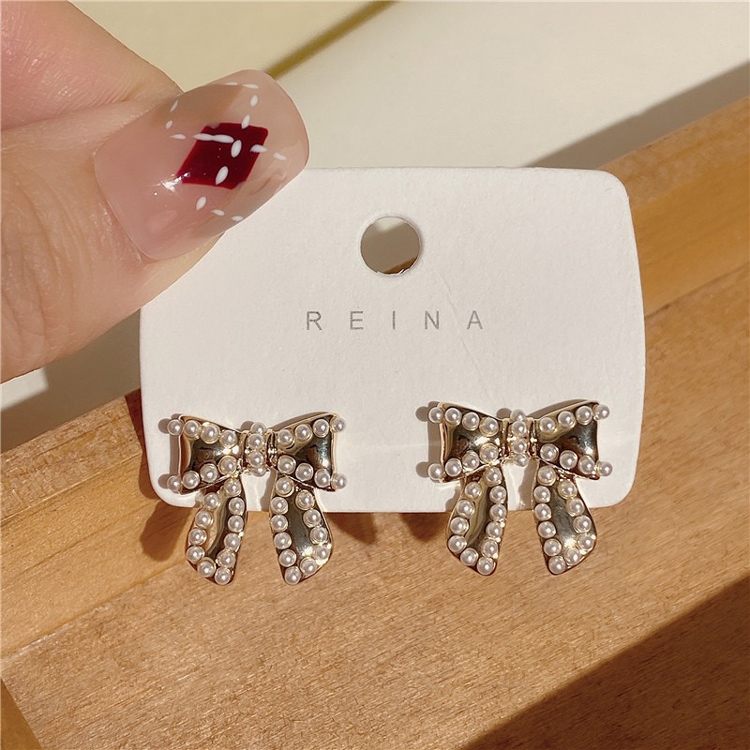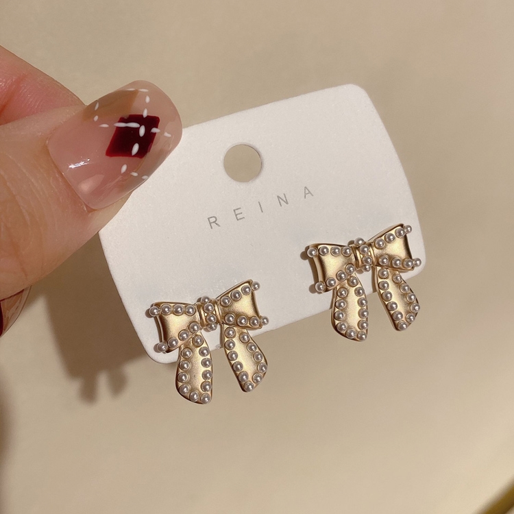 商品內容:復古風珍珠蝴蝶結S925耳釘 H111031103