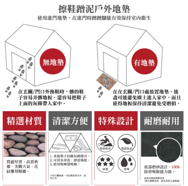 ※地墊由環保橡膠製成,故會有些許橡膠味,屬正常現象,對人體無害;將地墊放置在通風處,味道會散去