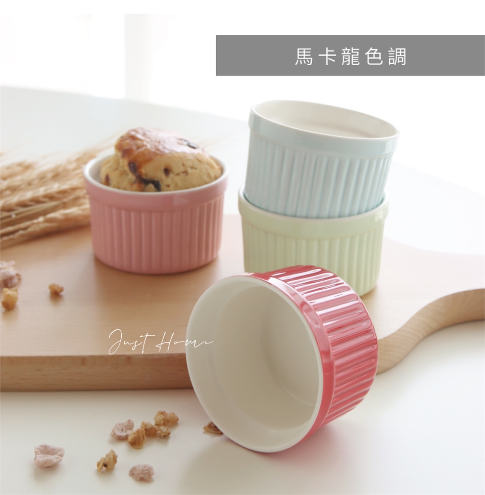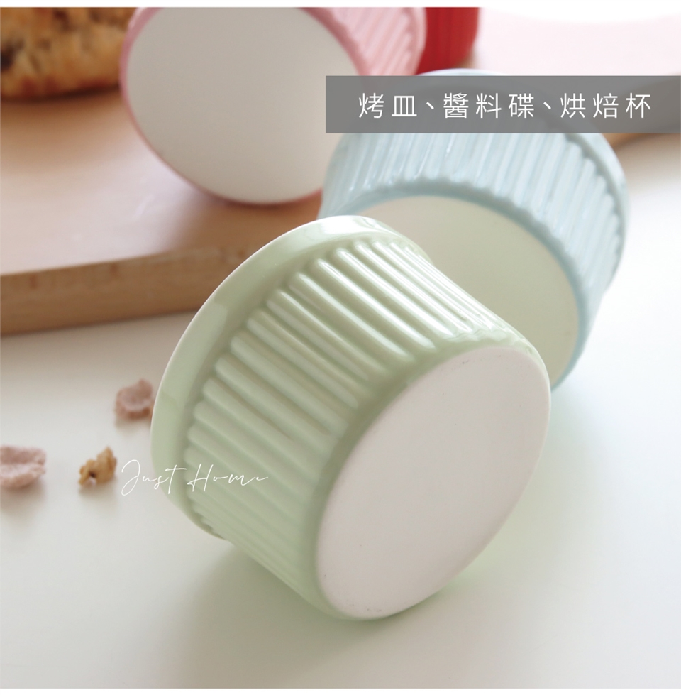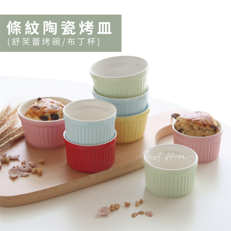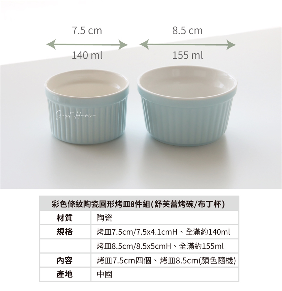 Just Home彩色條紋陶瓷圓形烤皿8件組(舒芙蕾烤碗/布丁杯)