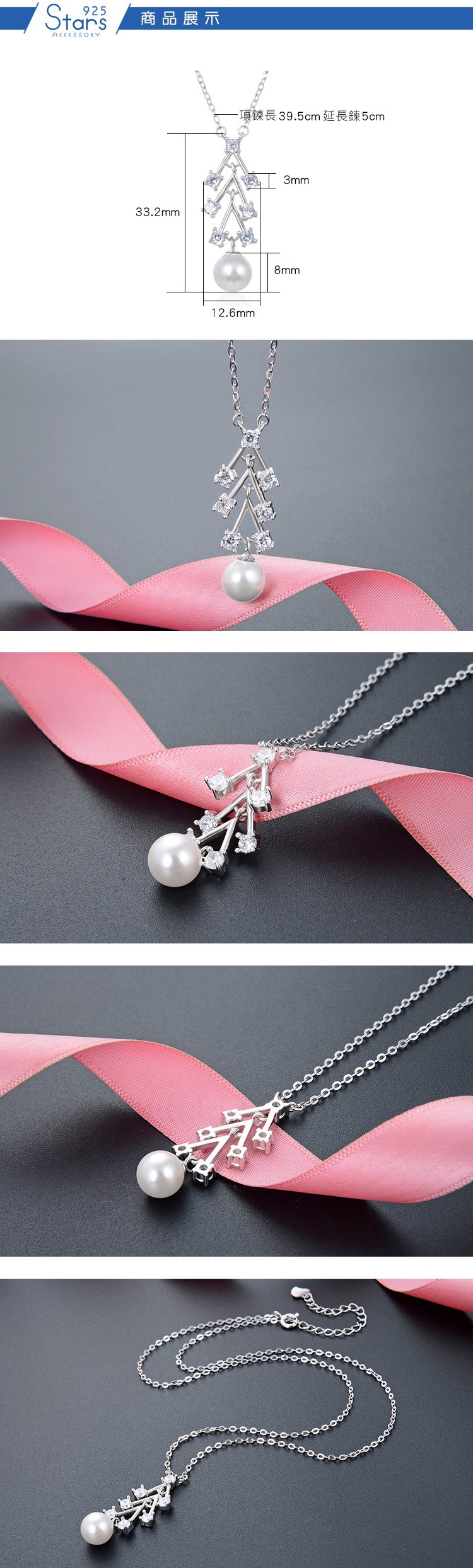 【925 STARS】純銀925閃耀美鑽鋯石幾何線條珍珠項鍊 純銀項鍊 造型項鍊 美鑽項鍊 珍珠項鍊 情人節禮物
