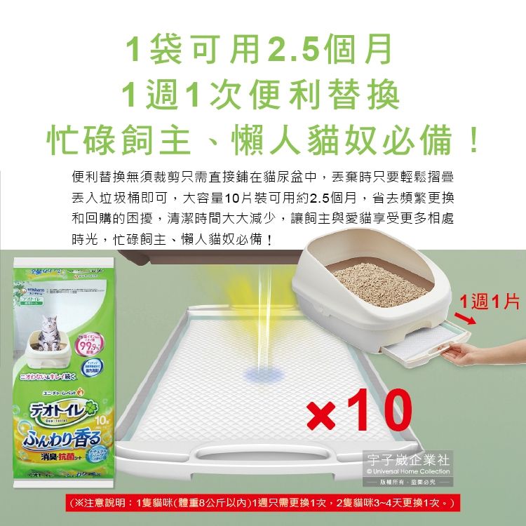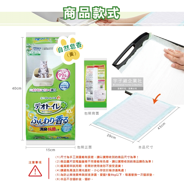 (14)請務必搭配Unicharm Pet雙層貓砂盆與Unicharm Pet一月間消臭貓砂使用,否則有無法發揮效果的問題。