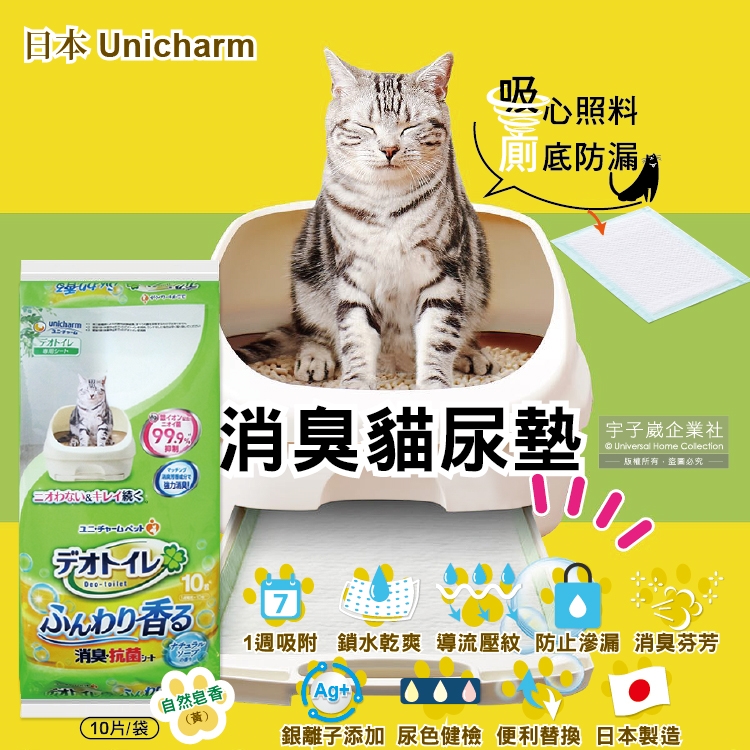 ●品名:Ag銀離子1週間長效瞬吸乾爽寵物消臭大師貓尿墊-自然皂香(黃)