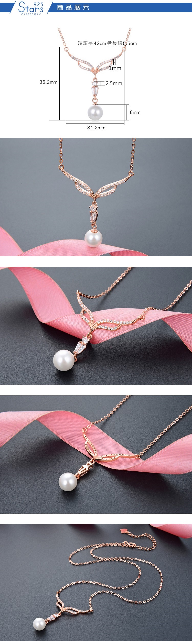 【925 STARS】純銀925璀璨閃鑽創意天使翅膀珍珠吊墜造型項鍊 純銀項鍊 造型項鍊 美鑽項鍊 珍珠項鍊 情人節禮物