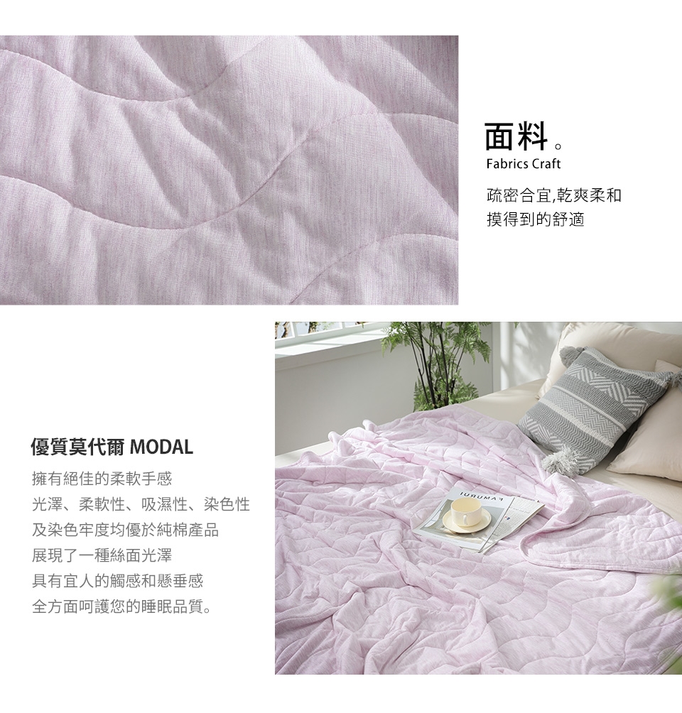 講求好品質及舒適觸感的您,環保又天然,而且它不需添加任何化學藥劑便能有效的減少細菌生長,符合現今「愛護地球」的環保精神! 本款莫代爾針織涼感夏被,典雅的單色系又不失高貴氛圍,純天然的面料更是擁有絕佳的吸濕性與快速排濕性,全方位的呵護您的睡眠品質。