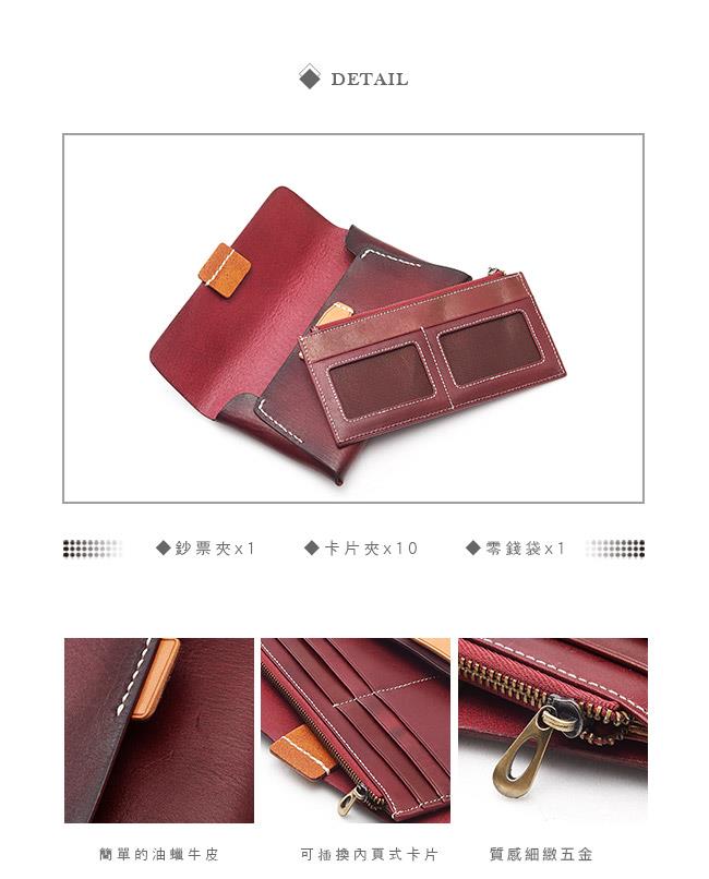 OCTAVIA8真皮 - 愛的信息 植染牛皮插稍歐式長夾- 卡門紅
