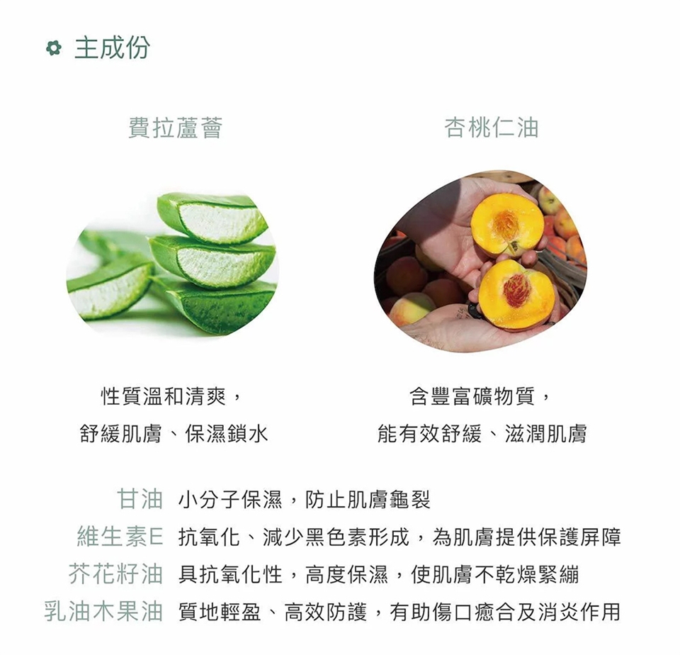 主成分:費拉蘆薈、椰子油、乳油木果油
