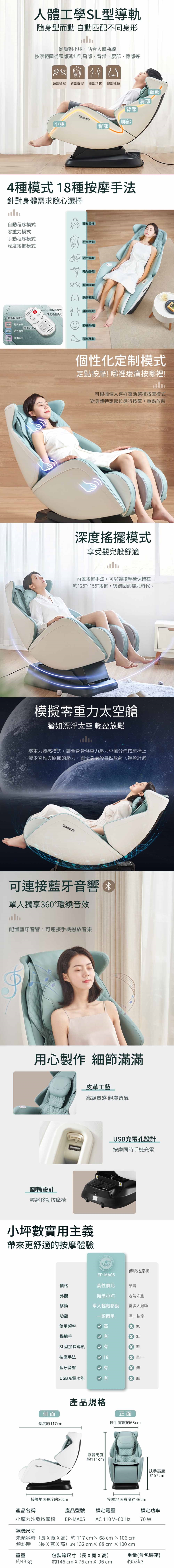 4種模式 18種按摩手法