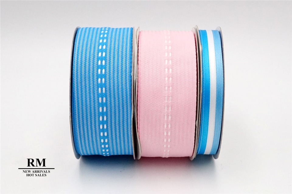 DK0019-1 1-1/2inch 20yard(淺粉色+白線條)