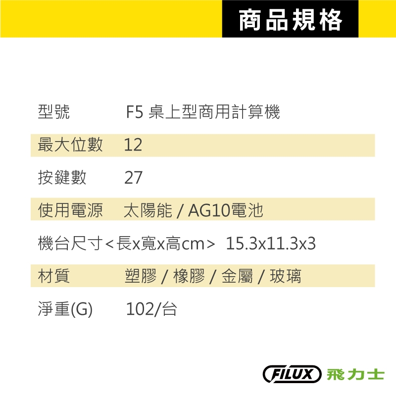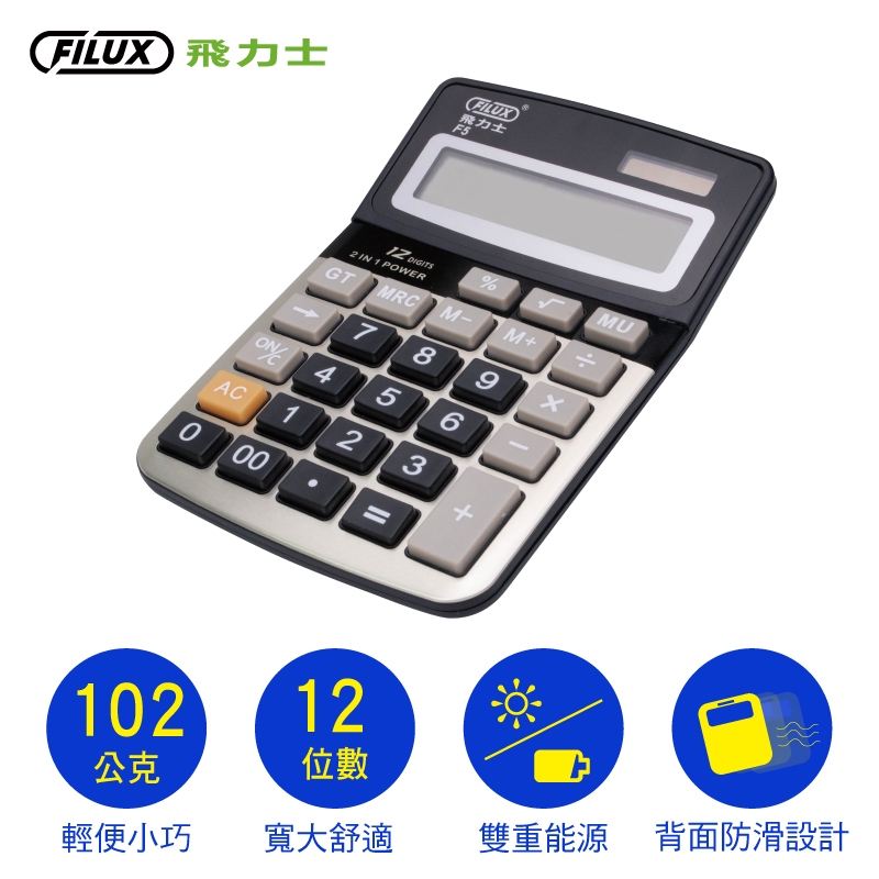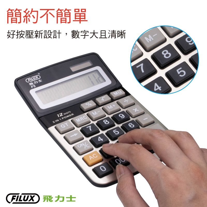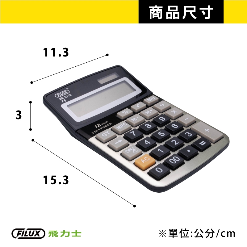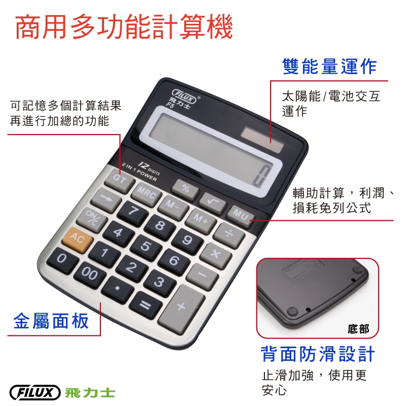 FILUX 飛力士-12位元雙電源【商用計算機】,質感金屬面板設計與操作介面