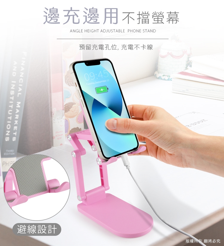 可折疊易攜,可放置手機/平板,凹槽貼合裝置且不易遮擋螢幕。