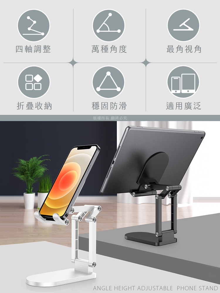 --手機平板通用,四軸設計,角度&高度更靈活--