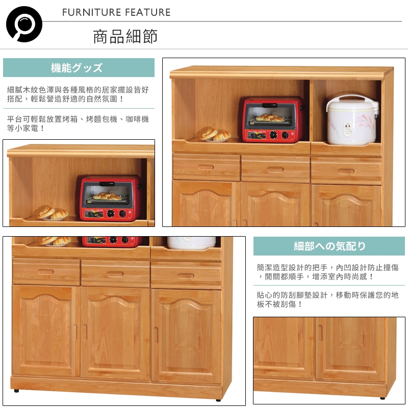 大檯面開放空間,可輕鬆擺放烤箱、電鍋等電器,收納輕鬆更便利!