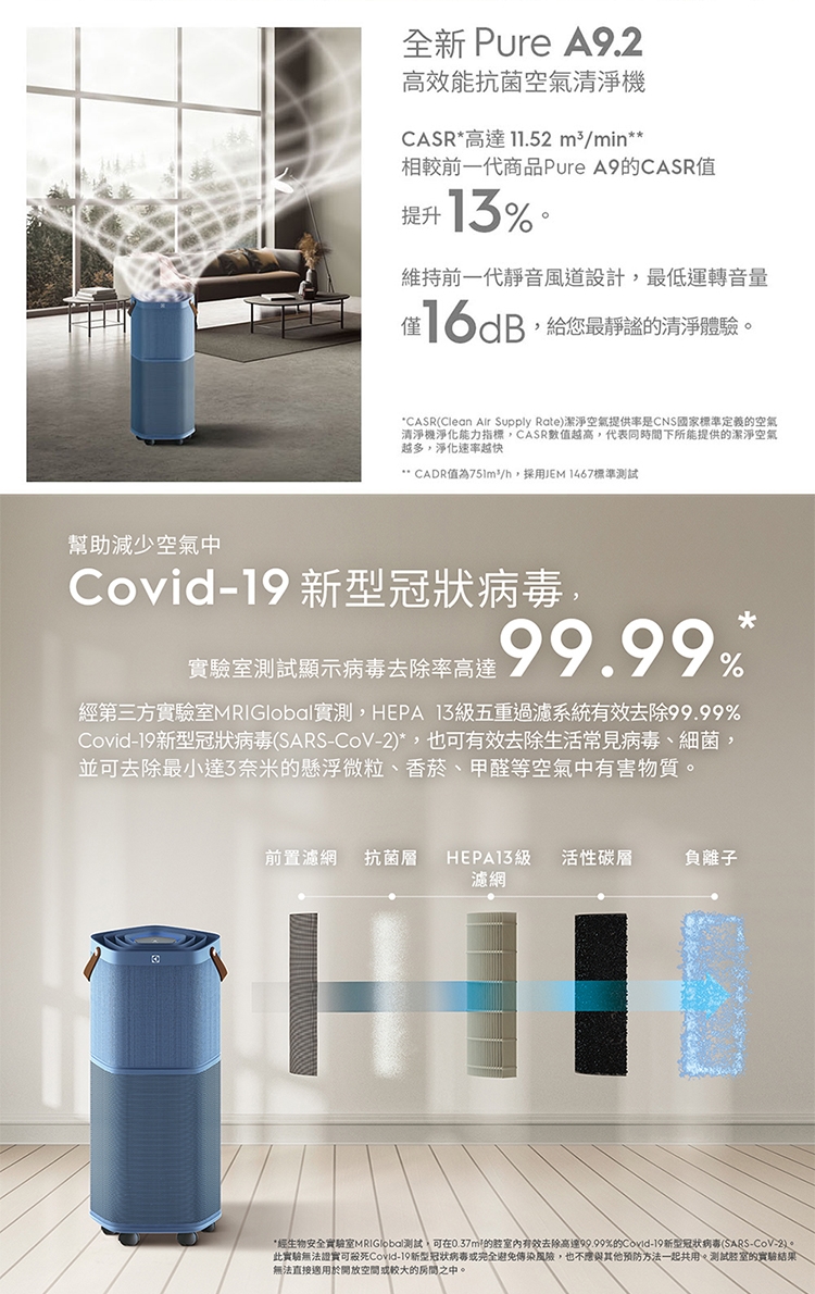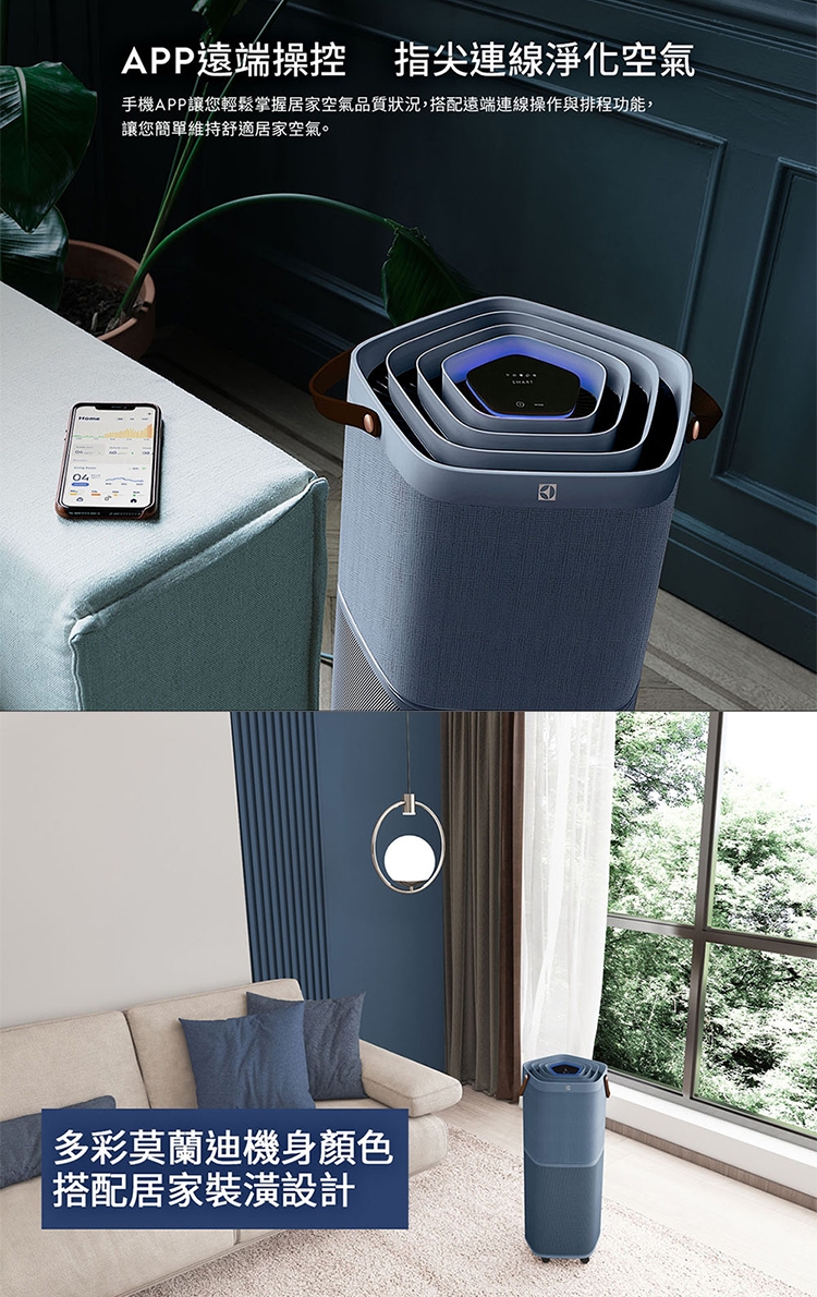 Electrolux 伊萊克斯 ~29坪 Pure A9.2 高效能抗菌空氣清淨機-丹寧藍 EP71-76BLA