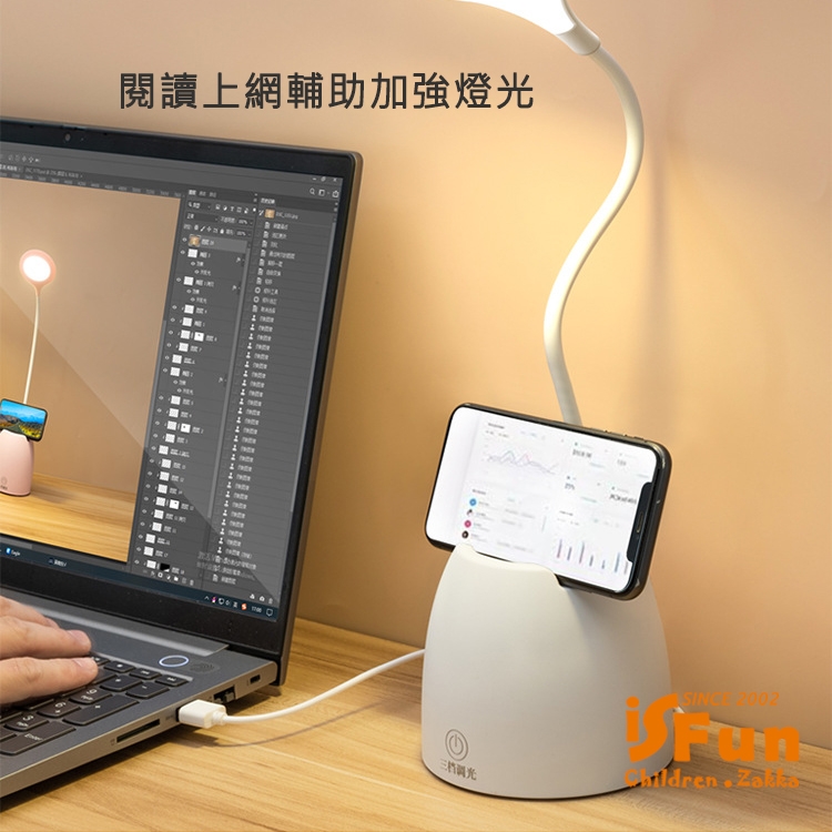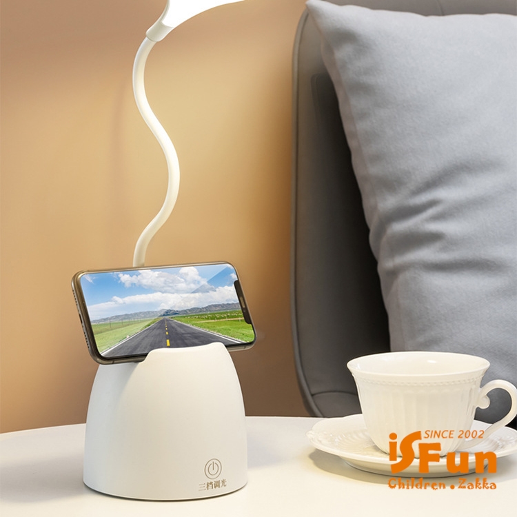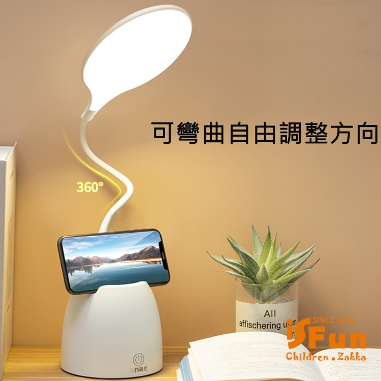 可愛圓形小檯燈造型,搭配可置物手機支架功能,