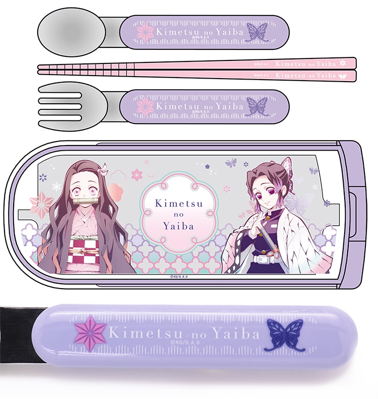 ●【品名】日本製萬代BANDAI鬼滅之刃塑膠不鏽鋼餐具盒組CT-20竈門禰豆子蝴蝶忍(含筷子.湯匙.叉子;富士Bactekiller抗茵Ag+銀離子;可洗碗機)