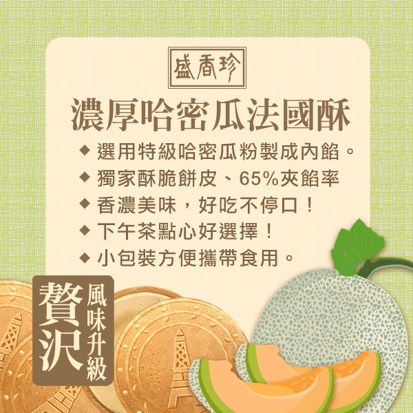 盛香珍 濃厚法國酥系列-哈密瓜口味168g/盒