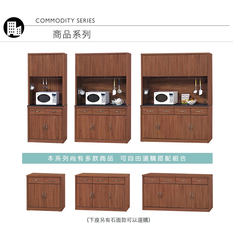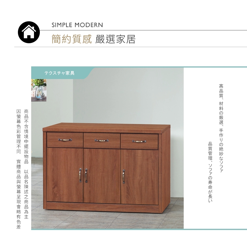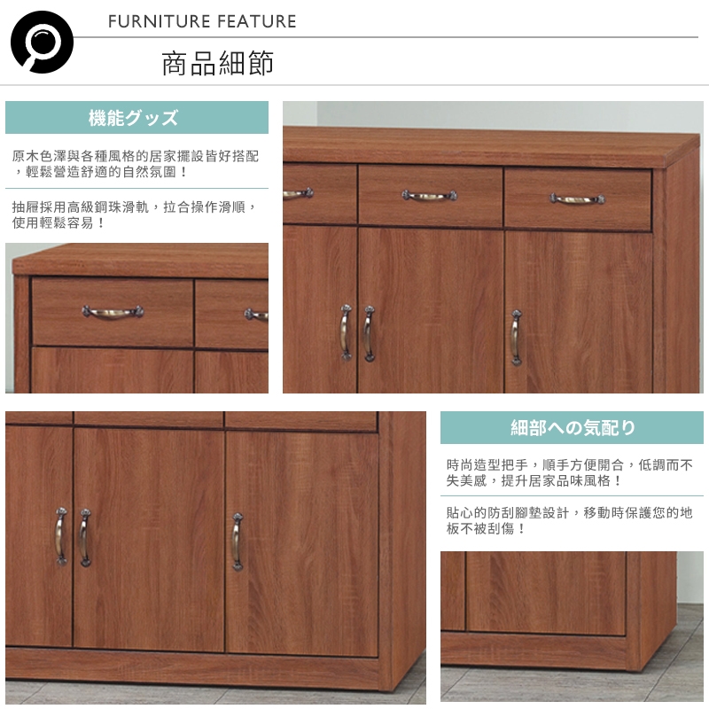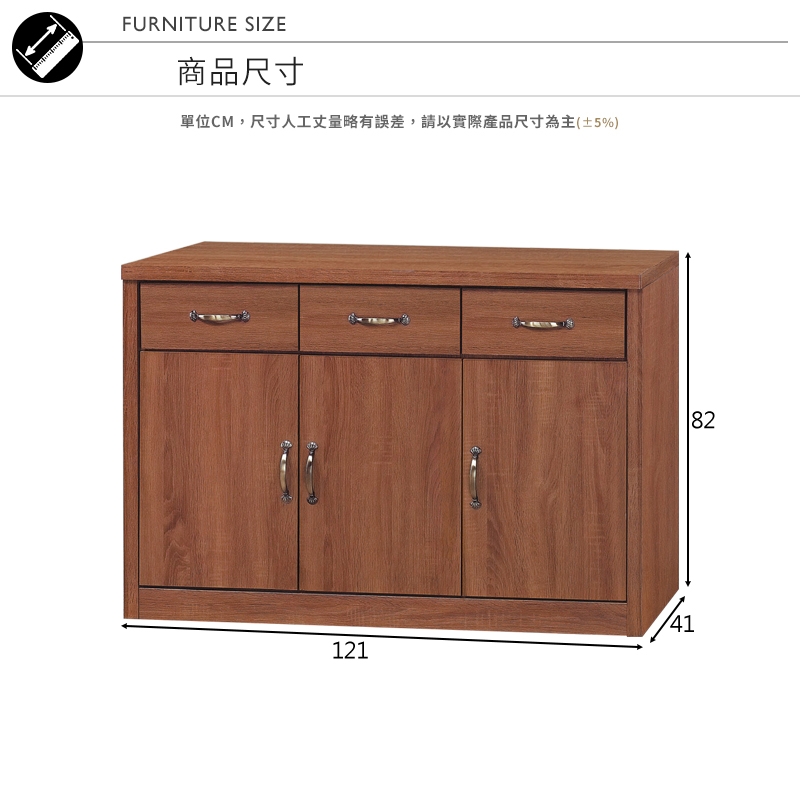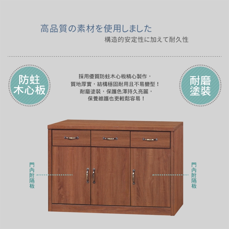 三抽三門置物空間,門內附隔板,讓您有效分類碗盤餐具!