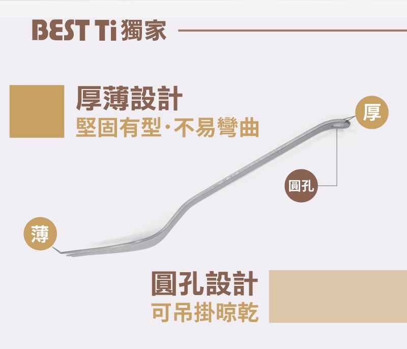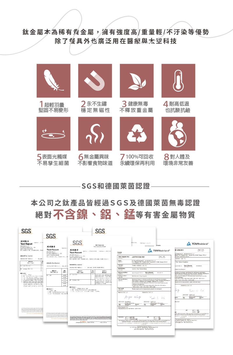 2.純鈦餐具表面光滑,不易卡垢,勿使用去漬粉、小蘇打粉、過碳酸鈉等還原酸系列之清潔劑,這些清潔劑會把二氧化鈦薄膜破壞導致褪色,出現鈦原色,雖一樣安全無毒但影響美觀。