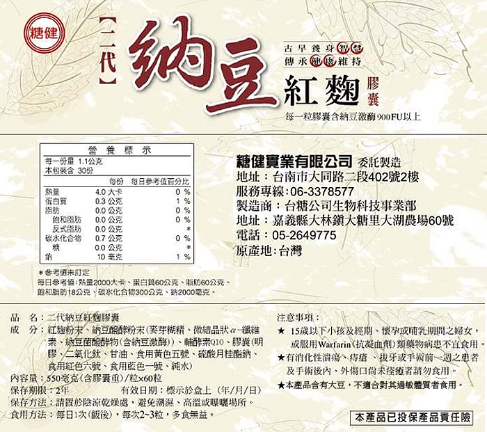 15歲以下小孩及經期、懷孕或哺乳期間之婦女,或服用Warfarin(抗凝血劑)類藥物病患不宜食用。