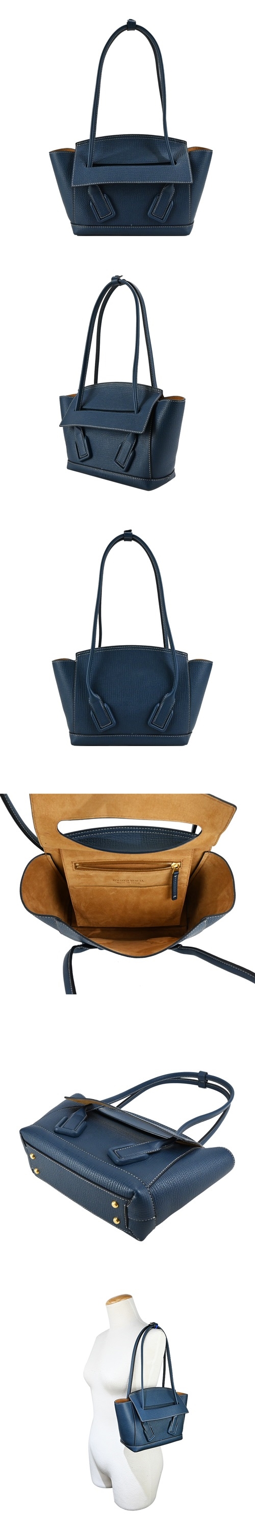 BOTTEGA VENETAThe Arco 經典小牛皮手提/肩背包(小號/海軍藍)