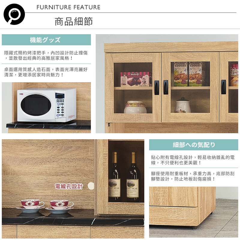 大檯面可輕鬆放置烤箱、烤麵包機、咖啡機等小家電!