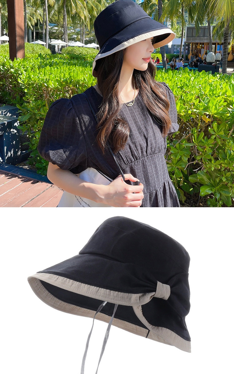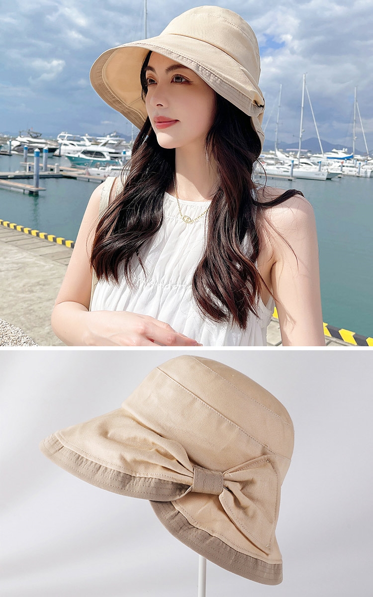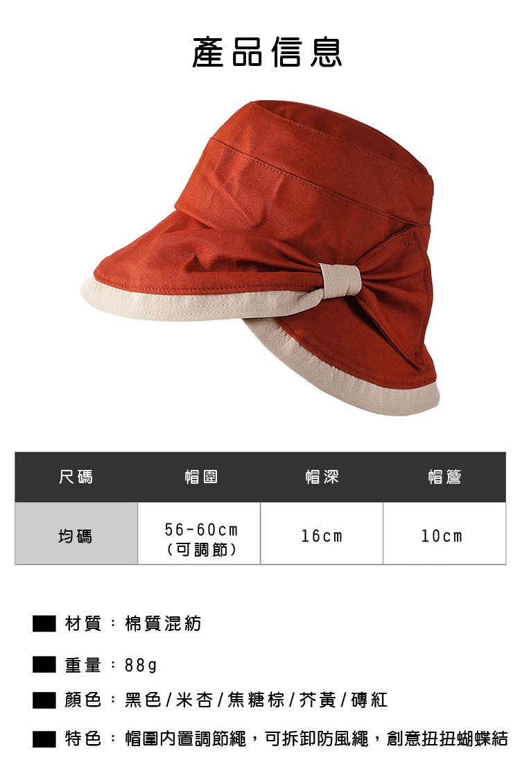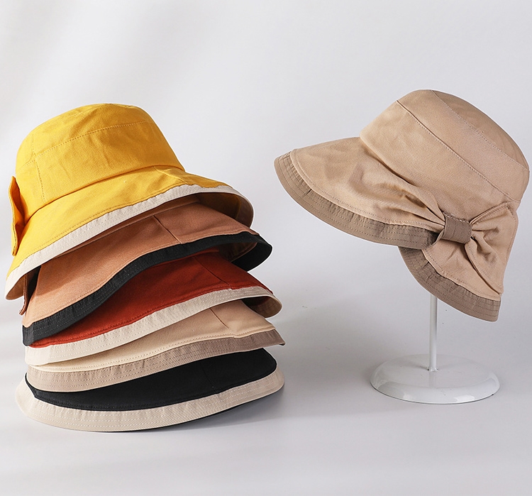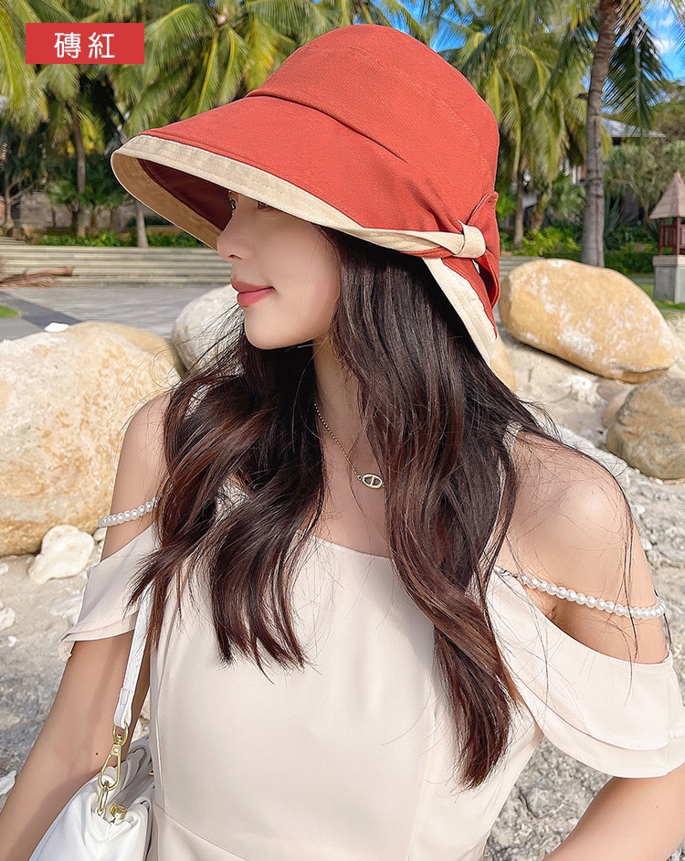 seoul show首爾秀 拼色扭扭蝴蝶結棉質混紡漁夫帽四季防曬遮陽帽