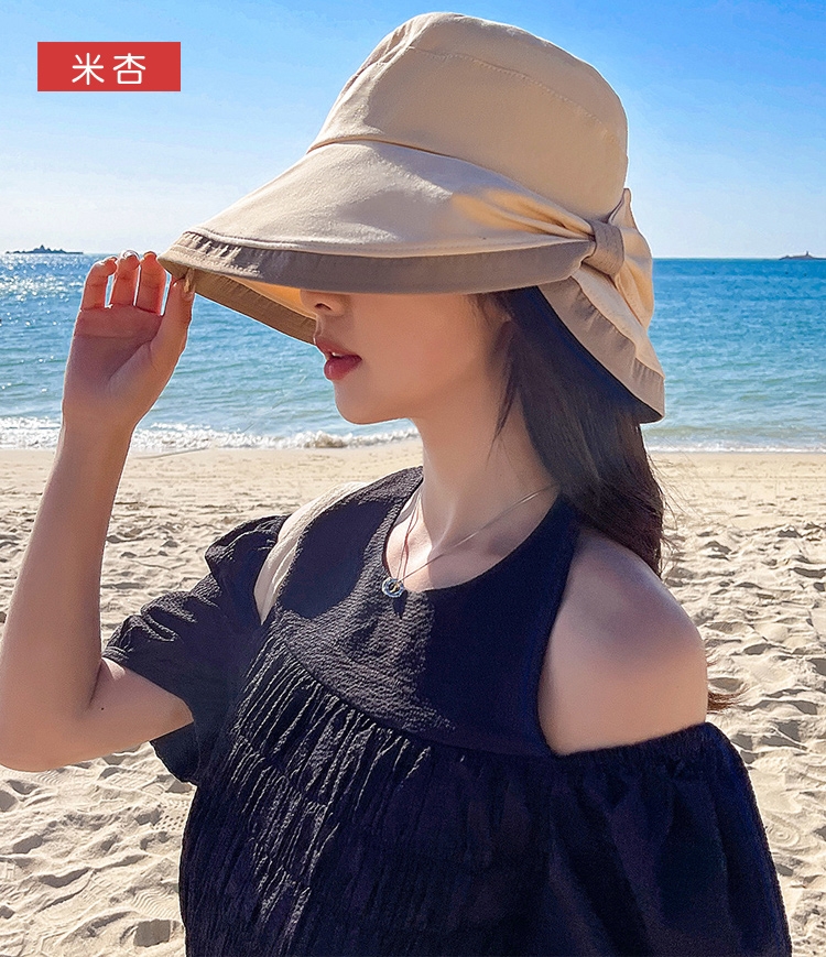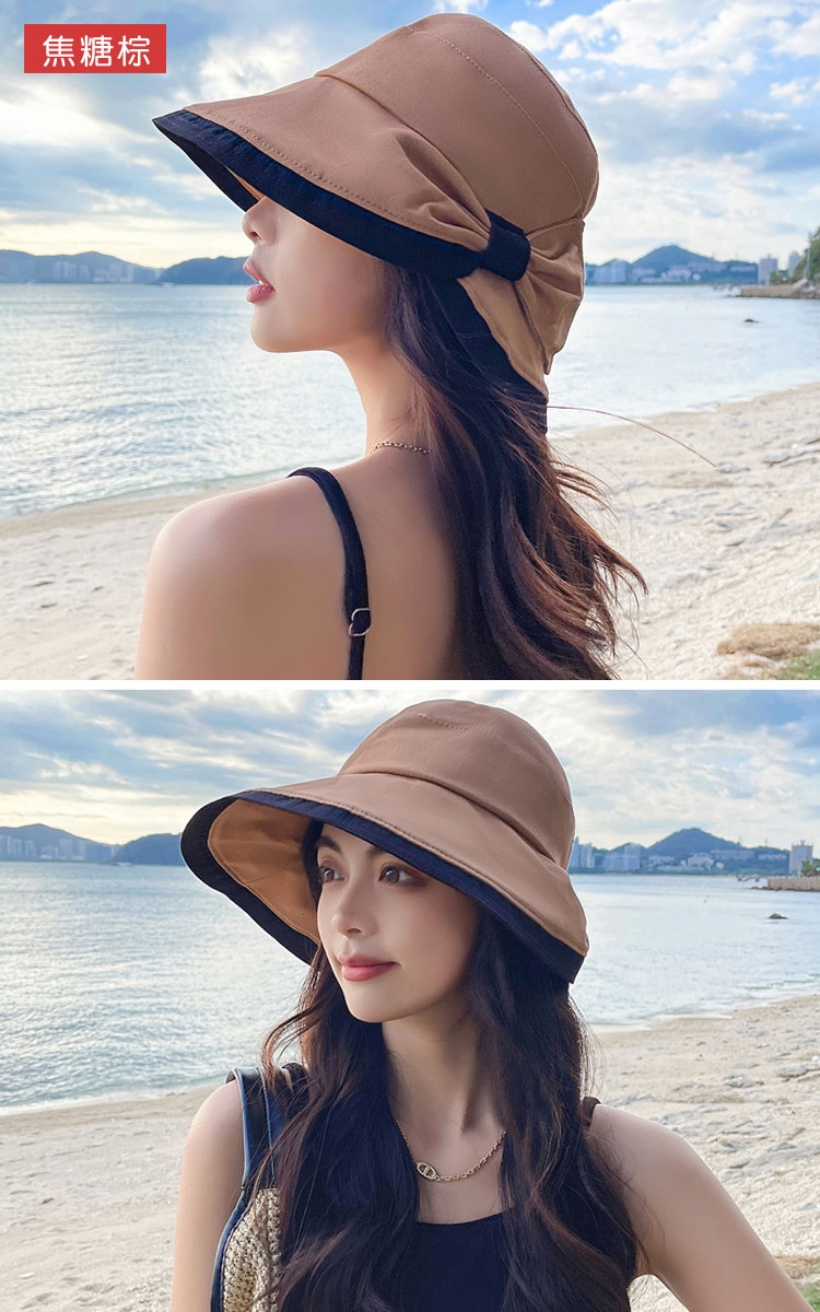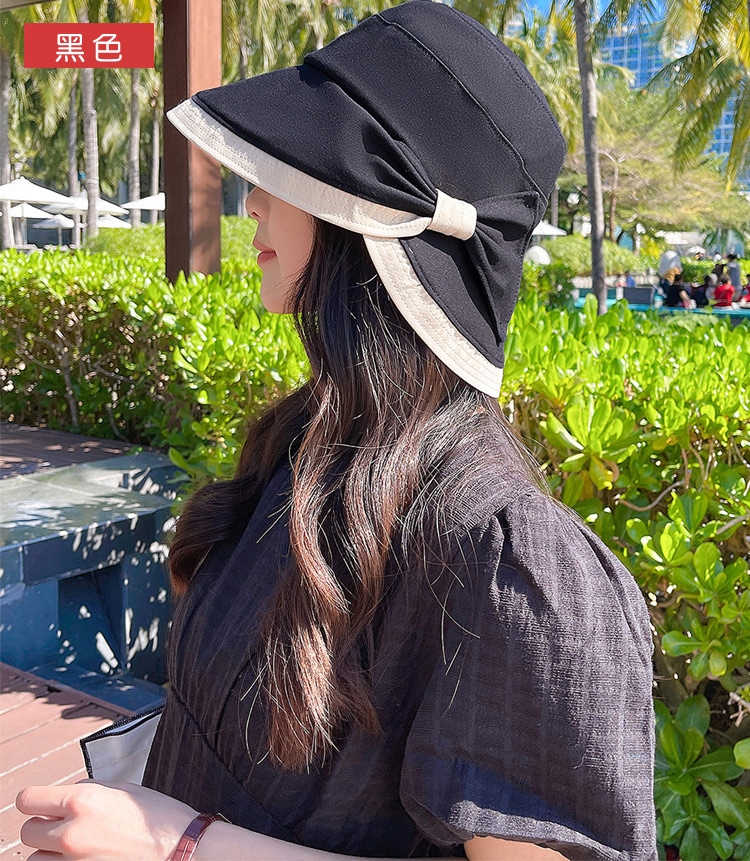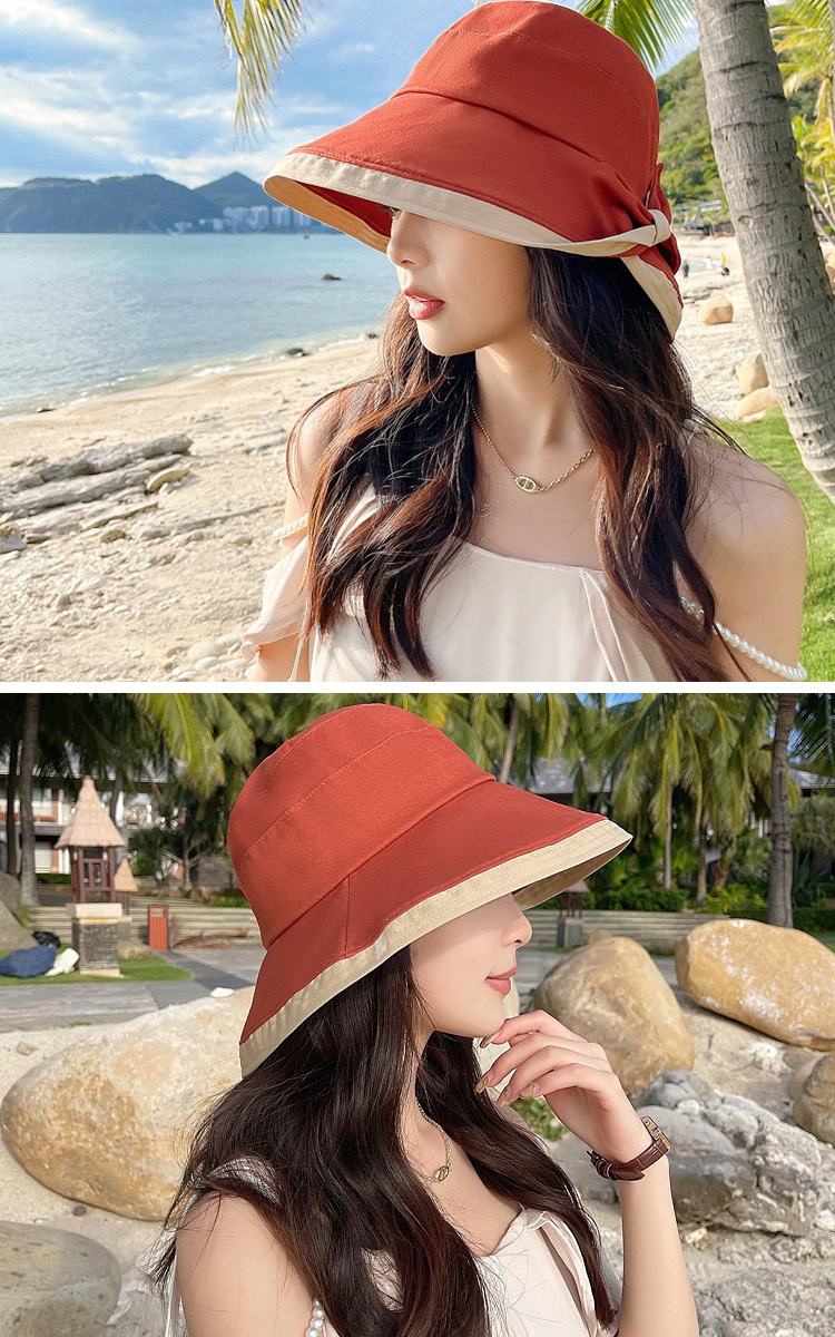 seoul show首爾秀 拼色扭扭蝴蝶結棉質混紡漁夫帽四季防曬遮陽帽